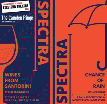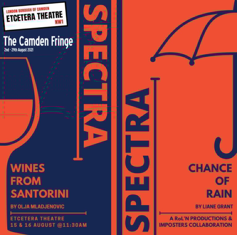 SPECTRA was presented at the Camden Fringe at the Etcetera Theatre. The production brought together two plays, Wines from Santorini and Chance of Rain, each depicting the intricacies of female relationships in contrasting contexts. Through intimate dialogue and shifting emotional landscapes, the work explored connection, tension and the complexities of womanhood.
